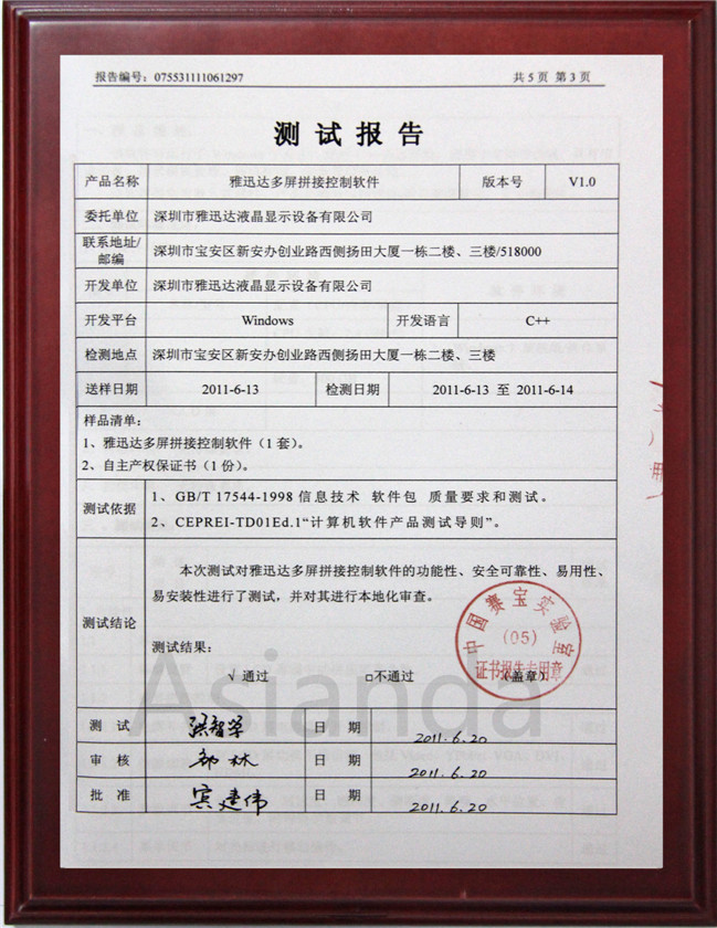 46寸拚接公安部檢測報告