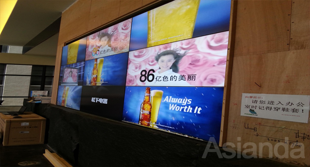 佛山該公司前台大廳采用的46寸液晶拚接屏,組成的3x3大屏拚接牆,拚縫僅5.3mm。根據客戶的裝飾要求,我公司采用壁掛式鋁合金支架支撐大屏拚接牆來達到客戶的審美觀!為了確保液晶拚接屏在播放過程中保持清晰流暢,該展示中心采取了我公司的建議,配備了一台16VGA分配器。同時該3x3大屏拚接牆還配備了我公司免費提供的多媒體互動軟件,以及客戶自備的2台電腦。