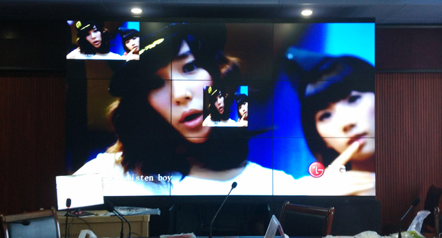 該工程使用的主要是第四代46寸液晶拚接屏PJ-B461P-6S和雅迅達多屏處理器YXD-Processor,caiyongjiguianzhuangfangshi,meiguandafang。shebeiyongyugongsishipinhuiyixitongzhong,gaoqingxidu,secaihaiyuanduhao,fanyinglingmin,ziyoukaichuangmanyoudiejiagongnengdeng,junshicixiangmudeliangdian!