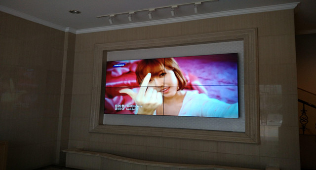 上海市上汽集團培訓中心多媒體液晶拚接屏的選購,采用的是雅迅達公司55寸低亮2*2的液晶拚接屏,液晶拚縫僅3.5mm,屏幕具有高清和標清多格式兼容性,能夠智能調節亮度,屏壽命超過50000小時。其采用牆體凹槽臂掛方式安裝。其它配套設備有:一台1進4出HDMI分配器和一個安卓播放盒。該液晶拚接屏使用HDMI信號源,主要用於播放上汽集團培訓信息。安裝事項完畢後,工程人員耐心的演示給客戶看,培訓客戶使用。看完效果後,客戶滿意簽收。