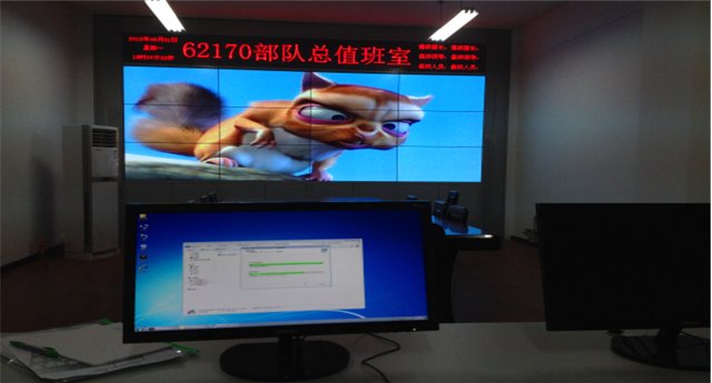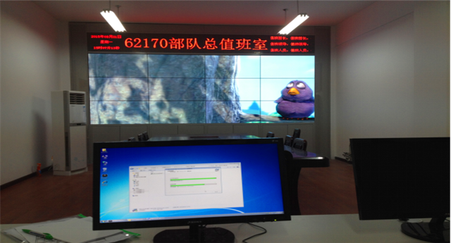 武漢62170部隊監控指揮室采用的是雅迅達46寸DID窄邊液晶拚接屏升級後的第四代智能液晶拚接(PJ-B461P-6S)。以機櫃安裝的形式,3×4的高清拚接牆在智能無線控製下,使高清畫麵(1920×1080)切換更加方便;其升級後的第五代自動色彩引擎IPCE-5,能自動調節色彩的飽和度,使圖像無限逼真。效果顯示完美,客戶表示十分滿意。
