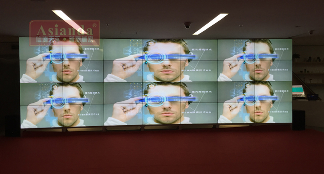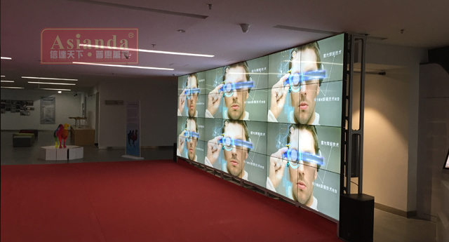 該產業基地展廳液晶拚接牆采用了49寸did3.5mm超窄邊液晶拚接單元,共用28片。整體拚接效果屬於長條形,需用圖像處理器保證畫麵比例及分配顯示區域。49寸didi液晶拚接單元其LED背光亮度為450cd/㎡,足以滿足室內顯示需求,拚接效果帶有小弧度防止邊緣視覺誤差和死角,還能防止部分反光影響。49寸did拚接牆是近期流行尺寸,繼46寸和55寸之後,49寸顯得更受歡迎,工藝及液晶分子的表現力都比較優秀。