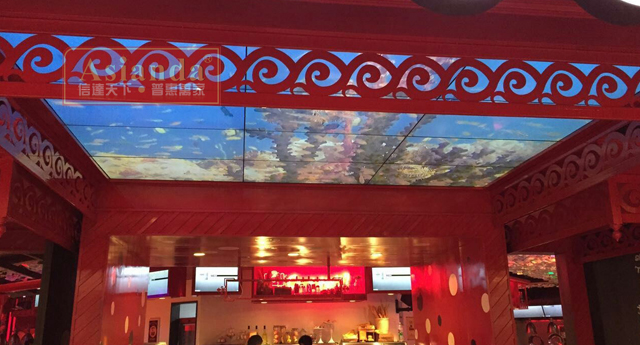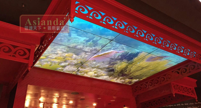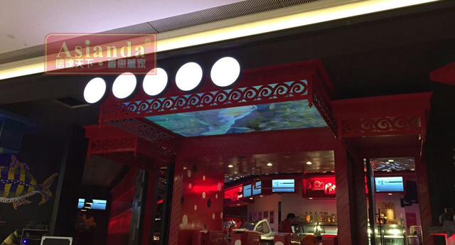 “舌尖自由行”餐廳位於四川成都市北城天街4樓,是一家海鮮自助餐廳,是一家以成cheng都dou旅lv行xing為wei概gai念nian海hai鮮xian自zi助zhu餐can廳ting。在zai搜sou羅luo全quan球qiu各ge地di海hai鮮xian美mei食shi的de同tong時shi,餐can廳ting環huan境jing完wan美mei融rong合he全quan球qiu各ge地di人ren文wen藝yi術shu元yuan素su,讓rang客ke戶hu在zai用yong餐can的de同tong時shi感gan受shou全quan球qiu各ge地di的de文wen化hua風feng情qing,享xiang受shou更geng自zi由you、更有樂趣的用餐體驗。雅迅達以一套46寸3x4液晶拚接大屏入駐“舌尖自由行”,采用了吊頂懸空的安裝方式,美觀大方,給人一種身臨其境的體驗,賦予人無限的想象空間。