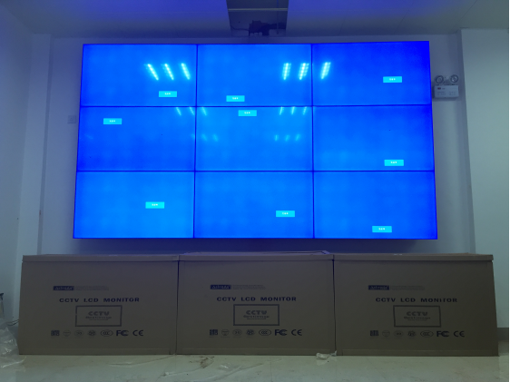 福州某公司安裝的3×3液晶拚接屏采用了雅迅達55寸超窄邊液晶拚接單元,運用了3×3共9塊,搭配了多屏處理器高清顯示設備。可以實現多畫麵同時顯示,並且可以實現自由開窗,監視窗的窗口大小可以自由調控、位置可以隨時挪動,可以隨時切換信號源。是一種非常靈活的顯示方案,對於多監控、多功能的公司顯示係統,這個使用非常合理。