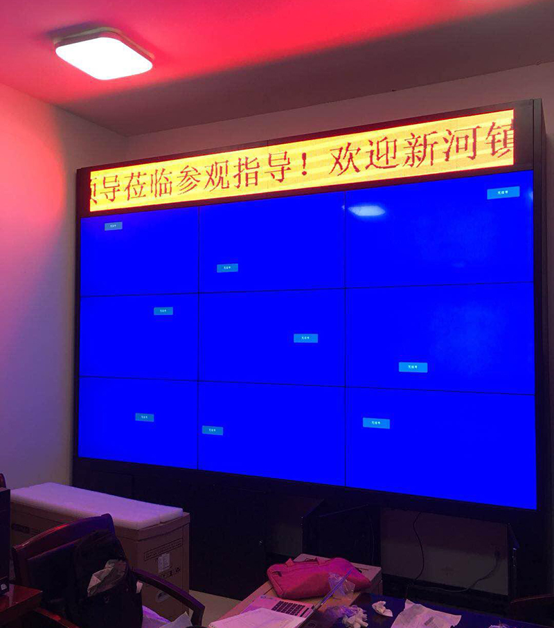 該項目位於,上海市崇明區新河鎮有機物循環利用中心,采用49寸3.5拚縫3x3 拚接屏,亮度450流明,機櫃安裝,大屏上部安裝LED橫幅作為信息顯示,主要用於日常有機物循環利用的監管調度工作。
