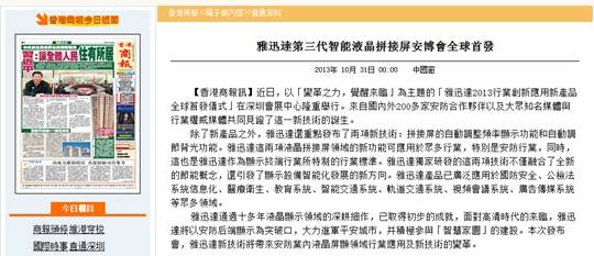 《香港商報》報道我公司智能液晶拚接屏