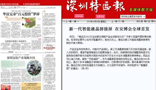 《深圳特區報》報道我公司智能液晶拚接屏