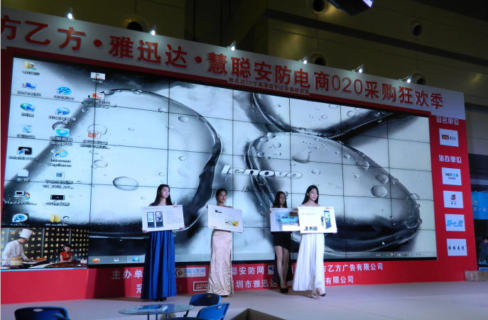 4月20日,鄭州國際會展中心人聲鼎沸——2014第四屆中西部IT產品博覽會盛大開幕。深圳市雅迅達液晶顯示設備有限公司,以展會冠名方及慧聰O2O安防電商采購狂歡季鄭州站冠名方與大屏讚助商三重身份亮相。雅迅達5*7超豪華超清拚接大屏力壓群雄成為整座展館最霸氣產品。35片雅迅達55寸DID超窄邊液晶拚接屏PJ-B551P-6組成的超大超清晰拚接牆,硬件配置上采用了高分辨率、超高亮度、對比度、超寬視角範圍的國際知名液晶麵板,軟件技術上添加了“自動刷新頻率功能”、“自動調節背光功能”和“預監回顯”功能,在軟硬件配置上均是國際水準,王者風範。