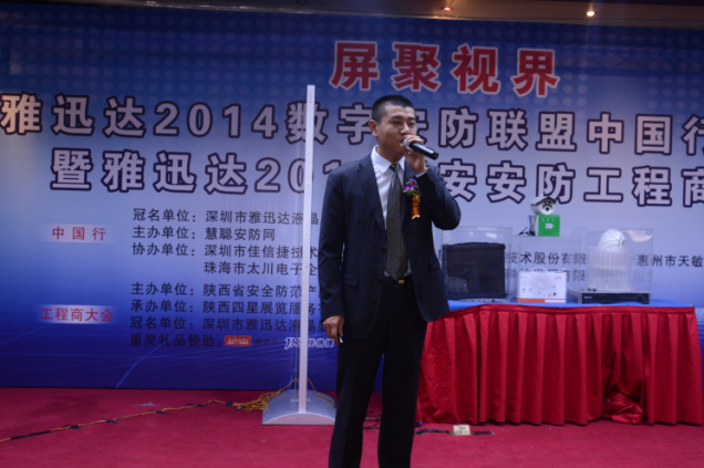 雅迅達副總經理兼產品總監韋世林先生作為冠名企業代表發表了致辭和新技術新產品的講解。他在致辭中表示:“雅迅達從2001年成立,我們經曆了13年的積累和鋪墊,成功完成了從傳統的安防液晶顯示設備製造商向以技術為主導、以(yi)品(pin)牌(pai)為(wei)驅(qu)動(dong)的(de)高(gao)新(xin)技(ji)術(shu)企(qi)業(ye)的(de)轉(zhuan)型(xing)。西(xi)安(an)是(shi)我(wo)們(men)開(kai)拓(tuo)西(xi)北(bei)市(shi)場(chang)的(de)重(zhong)點(dian)城(cheng)市(shi)之(zhi)一(yi)。經(jing)過(guo)西(xi)安(an)分(fen)公(gong)司(si)的(de)不(bu)懈(xie)努(nu)力(li),雅(ya)迅(xun)達(da)在(zai)陝(shan)西(xi)已(yi)經(jing)占(zhan)據(ju)了(le)一(yi)席(xi)之(zhi)地(di)。雅(ya)迅(xun)達(da)產(chan)品(pin)和(he)解(jie)決(jue)方(fang)案(an)在(zai)安(an)防(fang)、電力、交通、公安、金融、平安城市等眾多行業得到了廣泛應用。”