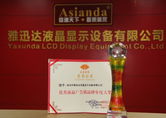 這個3月,雅迅達(Asianda)收獲頗豐,除了美國DSE展凱旋而歸,2015湖北工程商大會首秀之外,還獲得多項榮譽加身。15日,我公司斬獲“2014年度視頻監控類最受關注十大安防企業”;20日,在由數字標牌網和中投傳媒主辦的“第五屆數字標牌行業高峰論壇暨金孔雀獎頒獎典禮”上,我公司又拿下“2014年度優秀液晶廣告機品牌年度大獎”。