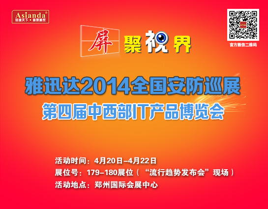進擊中原 雅迅達5*7超大液晶拚接牆將亮相鄭州IT展   由深圳市雅迅達液晶顯示設備有限公司冠名的2014第四屆中西部IT產品博覽會,將在4月20日鄭州國際會展中心盛大開幕。繼第一、第二、第三屆展會成功舉辦之後,第四屆展會組委會河南...