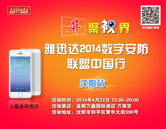 雅迅達中國行沈陽站活動今日開幕   4月22日,在沈陽首家白金五星級酒店皇朝萬鑫酒店萬喜宮,雅迅達2014數字安防聯盟中國行沈陽站活動如期舉行。