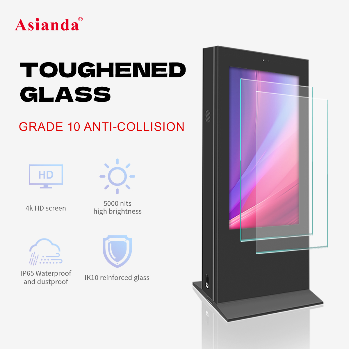 戶外專用高亮液晶顯示屏,LED直下式背光,亮度2000cd/m2,陽光下可視;