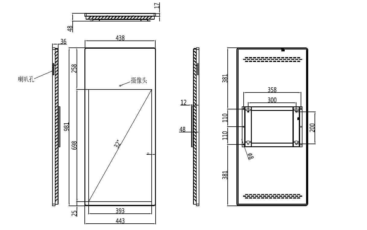 液晶屏:32寸 量子點LED 屏幕比例: 16:9 分辨率:1920*1080 顯示區域:698*392 點距: 0.17*0.51 對比度:4000:1 亮度:350cd/m2 響應時間:6ms 視角: 水平/垂直:178° 背光:量子點LED 色域:480ma時,為96.7%;600ma為92.4% |